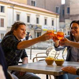 Krönen Sie Ihren Tag mit einer kulinarischen Köstlichkeit Paduas: Wählen Sie zwischen einem typisch paduanischen Aperitivo in den historischen Läden des Mercato Sotto Salone oder einem erfrischenden Minzkaffee im traditionsreichen "Caffè Pedrocchi".